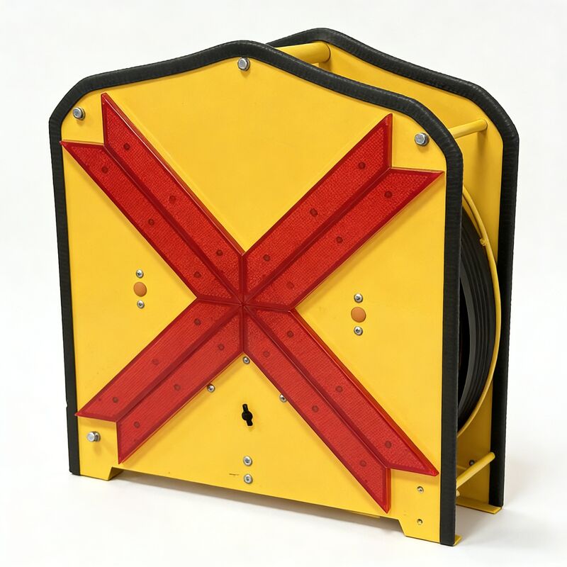 Ein innovativer 3,5 Meter langer einziehbarer Lichtstreifen erweitert den traditionellen Warnpunkt in eine lineare Isolationszone, um den Verkehr effektiv zu steuern und gefährliche Grenzen abzugrenzen.
