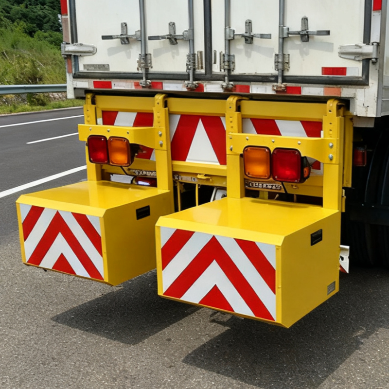 The Mobile Buffer Unit is installed at the rear of large vehicles to prevent following cars from under-riding in a rear-end collision, thereby ensuring the safety of both drivers and workers. It is primarily designed for municipal road maintenance and other temporary mobile work vehicles, providing crucial on-site personnel protection. Every product released to the market has passed rigorous road safety tests in Japan and complies with all relevant road safety usage standards.